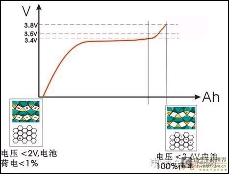 从上图的曲线不难看出,磷酸铁锂电池在快充满电时,锂离子几乎完全从正极脱嵌到负极,电池端电压会快速上升,出现充电曲线的上翘现象,这样会导致电池很容易达到过充电保护电压。因此磷酸铁锂电池组中某些电池充不满电的现象相对锰酸锂电池组而言会更为明显。