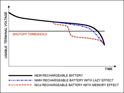 图1.镍镉电池的记忆效应与镍氢电池的惰性效应之间的比较