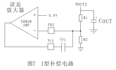 IC引脚FB2是误差放大器反相输入端,引脚VC2是误差放大器输出端。误差放大器单位增益频率fUG可表示为: