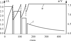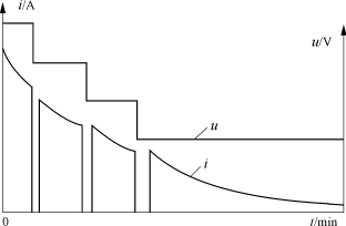 2)三阶段充电法 在充电开始和结束时采用恒电流充电,中间用恒电压充电。当电流衰减到预定值时,由第二阶段转换到第三阶段。这种方法可以将出气量减到最少,但作为一种快速充电方法使用,受到一定的限制。