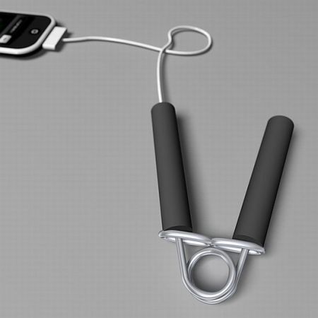 目前有不少新奇创意充电器,下面这款握力充电器就很值得推荐。如果您想在锻炼手劲的同时还能给您的iPhone充电,那么这款设计将会是非常不错的选择。表面上来它只是一个普通的握力器,然而当你不停的捏紧握力器的时候,所产生的动能就会被转换成电能为给您的iPhone充电,这是非常环保的设计。原理也非常简单,有兴趣的朋友还能自己DIY,用一个转换接口还能给其他接口设备充电。