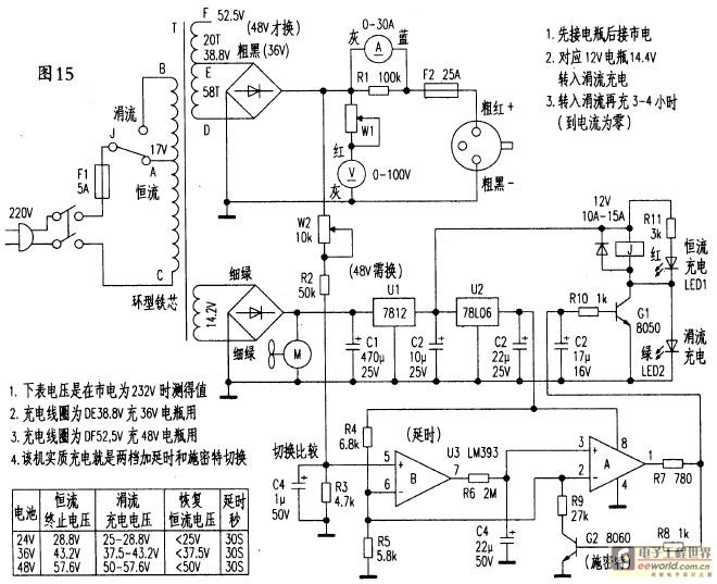 快乐牌KLG智能充电器是一款货运三轮常用的大功率带环牛变压器的充电器。电路原理图见图15所示。