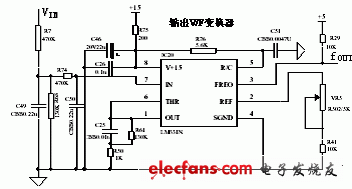 (2) 压频变换装置:将模拟的电压量转化成频率值,这是一种A/D转化方式,将输出电压U0采样通过压频变换装置传给单片机,压频转化装置我们用的是National Semiconductor的LM331。