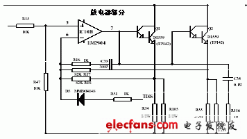 快速充电的原理是通过电池两端不断的充放电来提高充电效率,从而减少了充电时间。放电器部分利用电压比较器,在5脚设置电压基准,6脚通过一个二极管和电阻同单片机相连,单片机接受外部控制指令,通过计数器控制TDIS端电平的高低;比较器的输出应用两个三极管级联,改善了静态工作点。