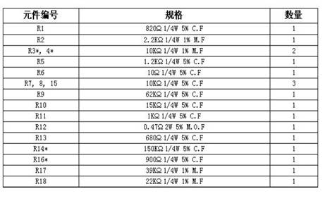 注:CF=碳膜电阻;MF=金属膜电阻;M.O.F=金属氧化膜电阻
