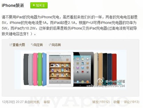 微博传言:iPad 10W充电器不能混用