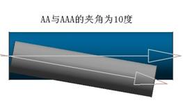 如果AA和AAA电池共用一个电池槽,一般把AAA电池斜放,那末就要与AA电池有一个夹角,其角度为10度。(见图)