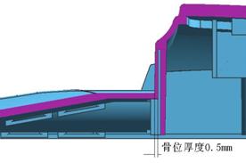 负极五金槽的设计不要太宽,一般在5.5mm以内,正极五金槽的设计宽度为5.5-6mm,同时各种电池的正极电池帽长度不一,为避免电池正极与充电器的正极五金接触不良,就要使充电器的固定正极五金的骨位不要太厚,厚度要保持在0.7mm-1mm.(见图)