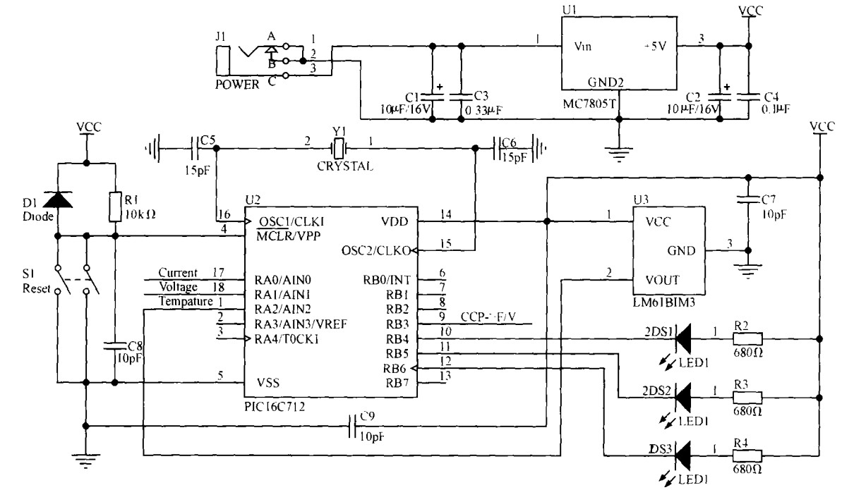 因此,设计良好的充电器应具有温度检测功能并能够根据不同的环境温度调整充电过程中的各转换电压值;同时,充电器还应具备温度保护功能,在充电过程中,当蓄电池温度超出限定的温度范围时充电器应立即停止充电或进入涓流充电,并且PIC16C712应点亮故障指示灯以提示用户出现何种异常。