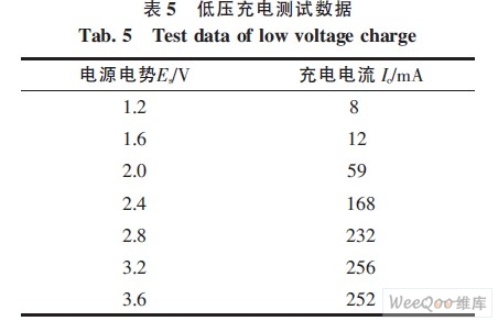 由表2 可见,当Es下降到3.6 V 时,充电电流为0,充电器不能再对电池进行充电,故最低可充电电压为3.6 V。