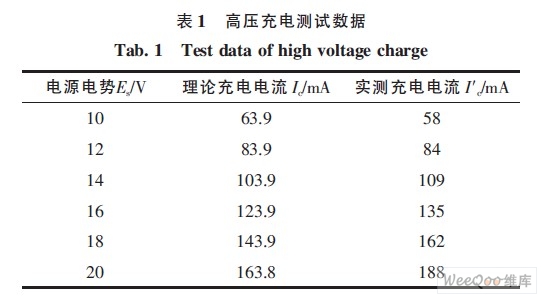 由表1 可见,在Es为10 V 时,实测充电电流与理论值存在5.9 mA 的偏差,充电电流低、充电器的转换效率不高可能与芯片的转换效率和输入电压有关,由TPS5430 的数据资料可知,在输入电压为10 V 左右,输出电流约为60 mA 时,其工作效率约为92%。而在12~20 V 范围内,实测充电电流大于理论计算充电电流值。