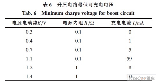 由表6 可知,逐渐降低电源电势Es时,充电电流也随着下降。当Es到达0.4 V 时输出电压已经在0 V 附近变化,因此能向电池充电的最低Es为0.4 V。