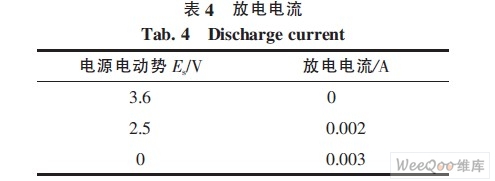 由表4 可知, 当电源电动势下降到最低可充电电压时,电池开始放电,放电电流为3 mA。考虑到放电电流受倒灌电阻Rd影响,改变Rd的大小可改变放电电流。试验表明,Rd=15 Ω 时放电电流最小。