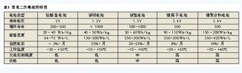 目前大量应用的充电电池包括铅酸蓄电池、镍镉/镍氢电池、锂离子/锂聚合物电池充电器。这几种电池的特性如表1所示。