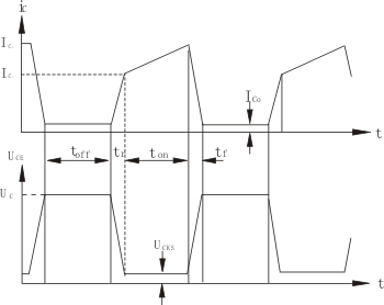 为集电极漏电流)。开关管导通后,集电极电流从IC1增大到IC2,集电极电压