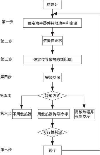 在开关电源功率器件的热设计中,要有一个好的热设计流程作为指导,这样才能做到工作的有序化和有条不紊。图1为功率器件热设计流程图