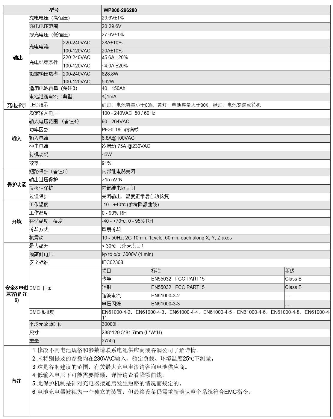 产品规格(铅酸充电器)