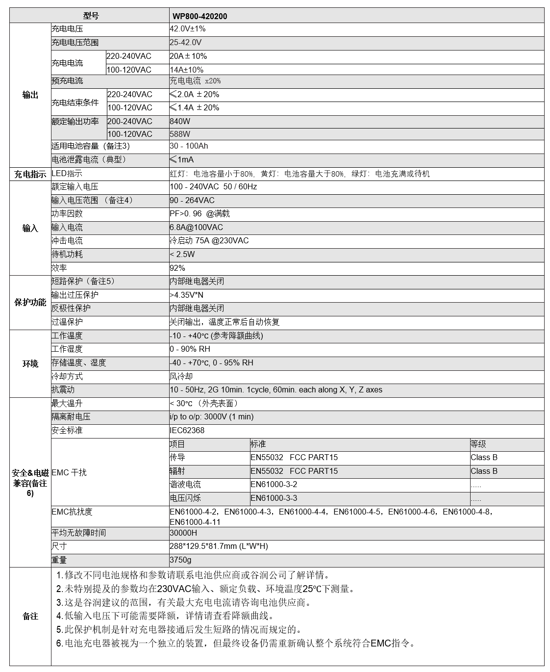 产品规格(锂电充电器)