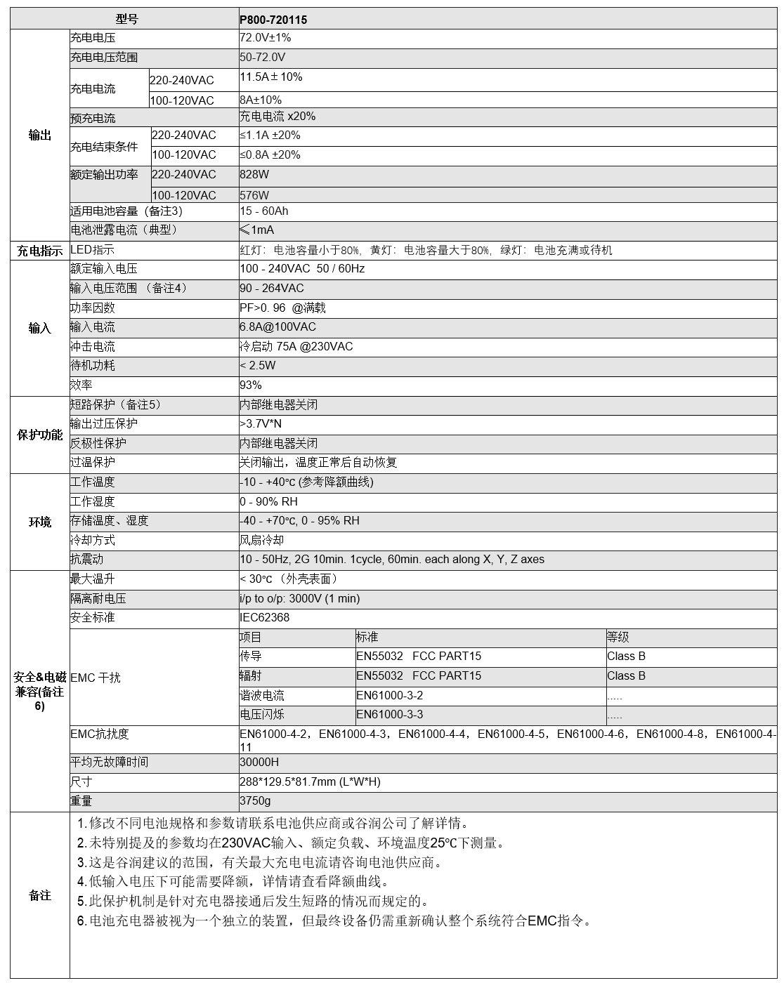 - 输出: 72V 11.5A