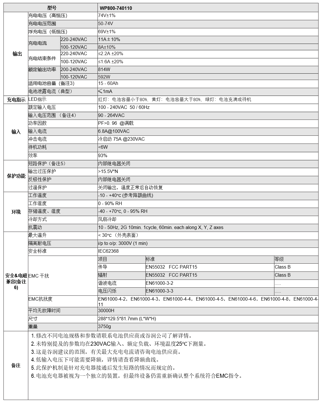 产品规格(铅酸充电器)